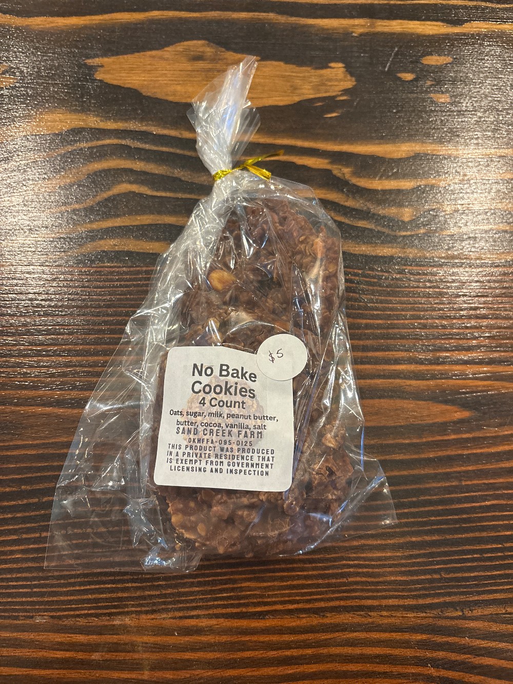 No Bake Cookies:Oats, Sugar, Milk, Peanut Butter, Butter, Cocoa , Vanilla, Salt
