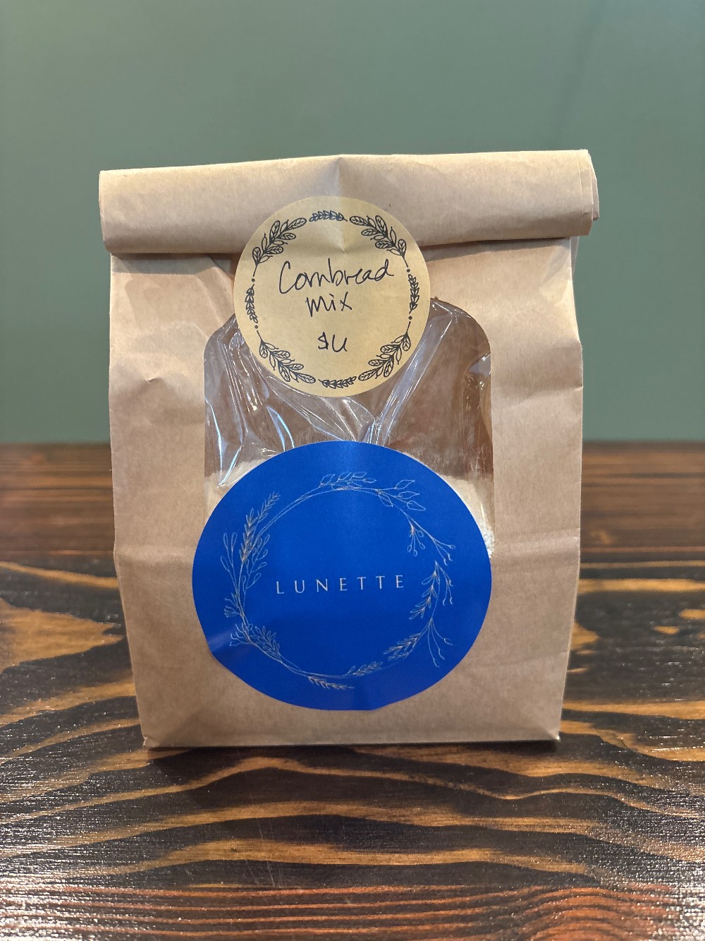 Cornbread - All Purpose Flour, Corn meal, Powdered Milk, Brown Sugar, Baking Powder, Salt