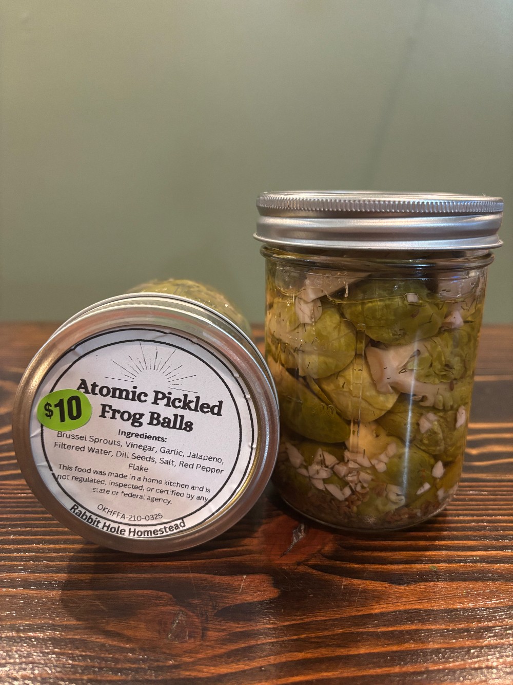 Ingredients:Brussel Sprouts, Vinegar, Garlic, Water, Dill Seeds, SaltAtomic Includes Jalapenos and Red Pepper Flakes