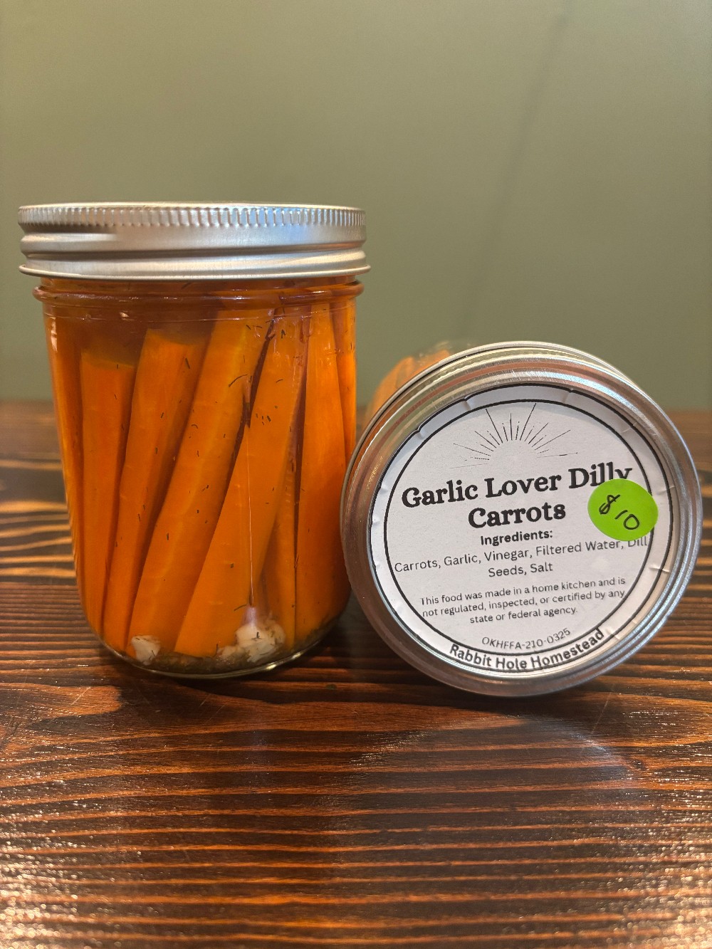 Ingredients:Carrots, Garlic, Vinegar, Water, Dill Seeds, Salt, Red Pepper Flakes