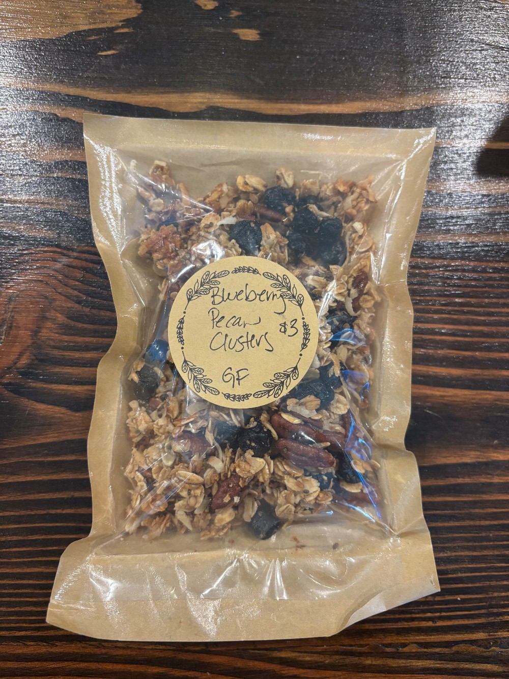 Blueberry Pecan Clusters - Oats, Pecans, Blueberries, Egg White, Maple Syrup, Honey, Flax Seed, Chia Seed, Vanilla, Cinnamon, Salt
