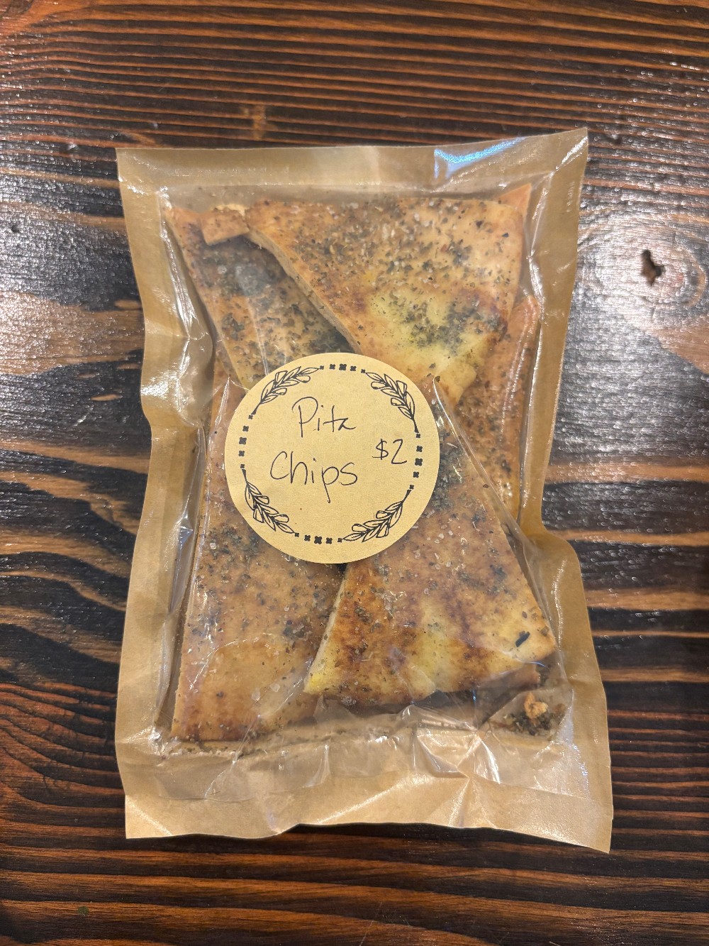 Pita Chips - Pita Bread (enriched wheat flour, dough conditioners, olive oil, yeast, salt) Olive Oil, Seasonings, Salt