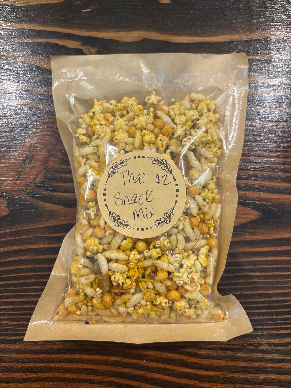 Thai Snack Mix - Puffed Rice, Puffed Sorghum, Sev, Boondi, Golden Raisins, Lemongrass, Garlic, Red Chili Thread, Herbs, Seasonings, Vegetable oil